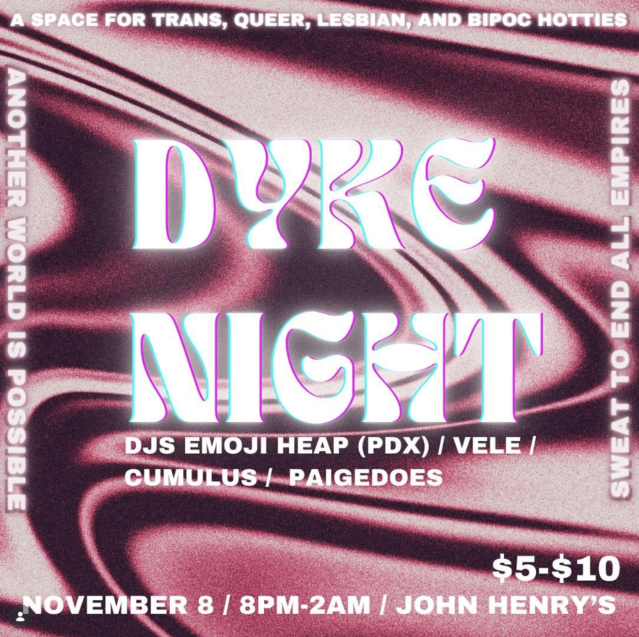 february 14- dyke night / john henry’s / eugene 8pm-1am